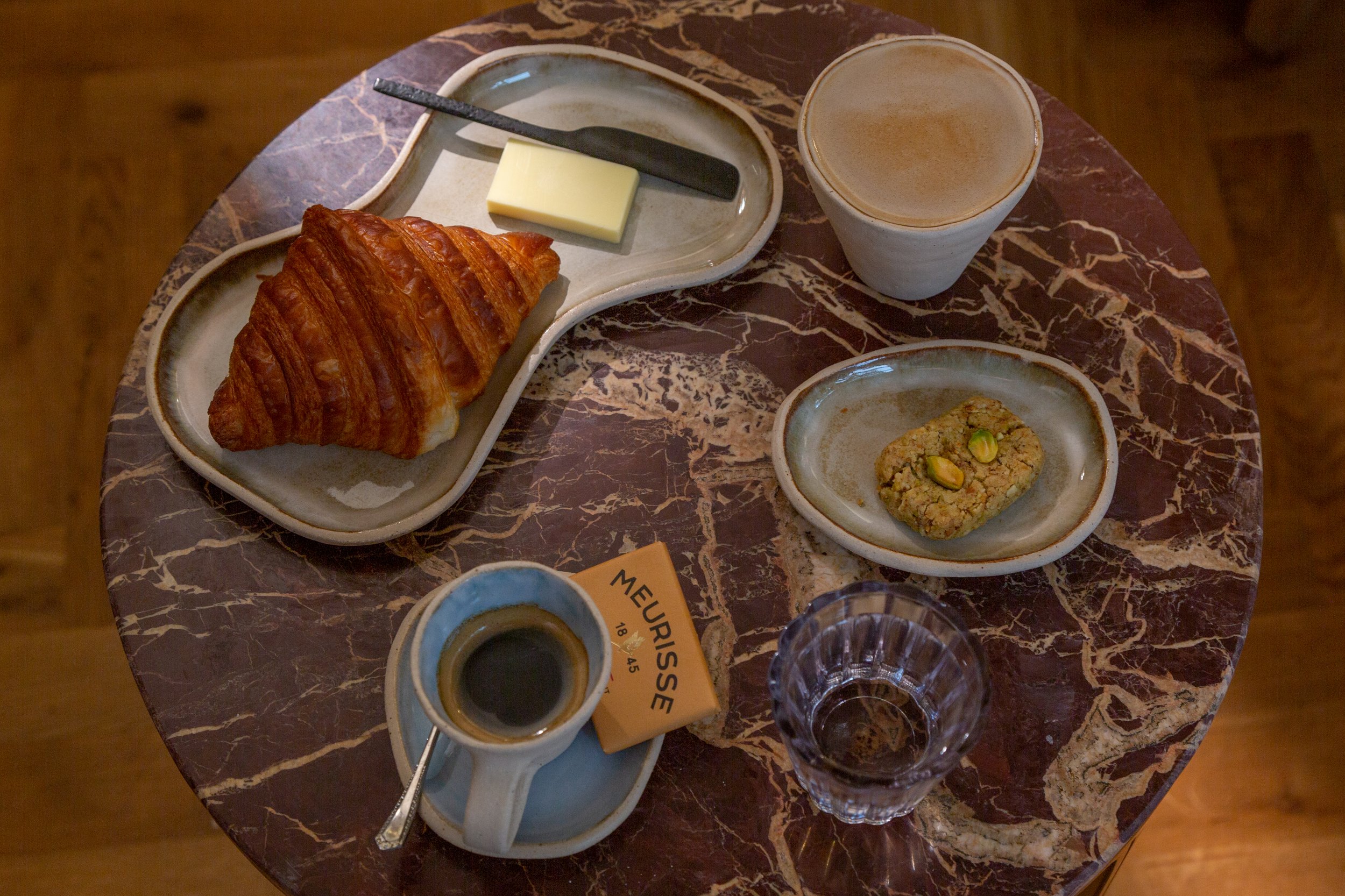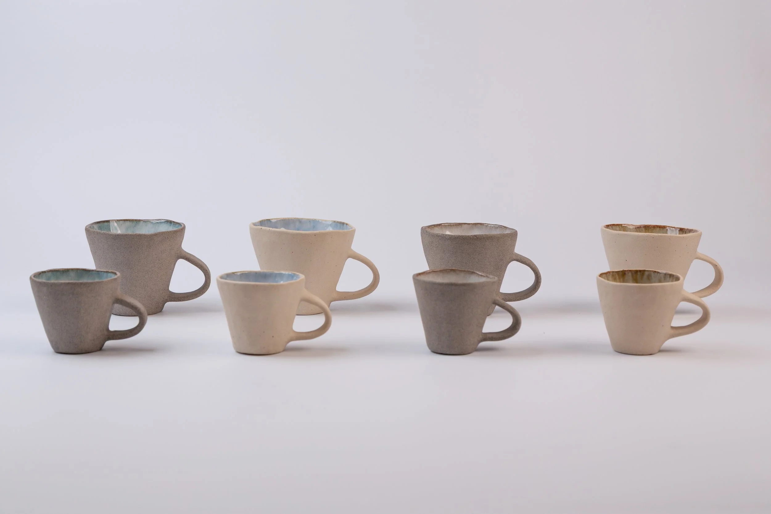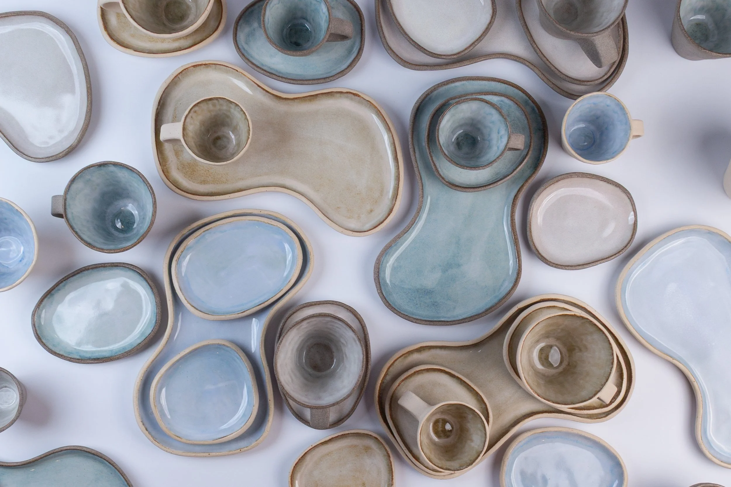 Our debut collection comprising cups, plates and saucers looks to reshape the ritual of drinking coffee at home. The ceramics evolved over the course of a year from Saskia’s artistic vision for Flat white & Espresso cup shapes. Rachel’s technical precision led the development process and together we refined proportions, handles, and glazes through real-life use.